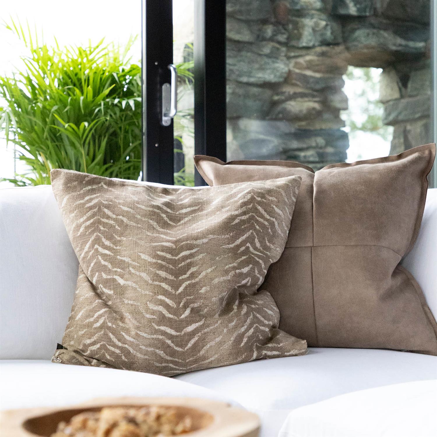 Et stilig putetrekk i kunstskinn med sidesømmer og dekorative sømmer, perfekt for å gi interiøret et moderne og sofistikert preg. Den glatte og elegante overflaten skaper en eksklusiv følelse, mens den skjulte glidelåsen nederst sikrer en sømløs og raffinert finish.