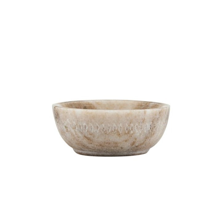 Man kan aldri få nok skåler. Enten den er til servering eller praktisk oppbevaring på kjøkkenet, vil denne skålen fra Nicolas Vahé være et opplagt valg. Skålen heter Marmor, og er, som navnet antyder, laget av marmor. Den naturlige marmoren har en fin, lys fargetone som gir et feminint uttrykk til det ellers rå materialet. Marmorskålen måler 3 cm i høyden og 7,5 cm i diameter. Bruk én eller flere skåler til tapasbordet, og vi garanterer at gjestene dine vil bli imponerte.