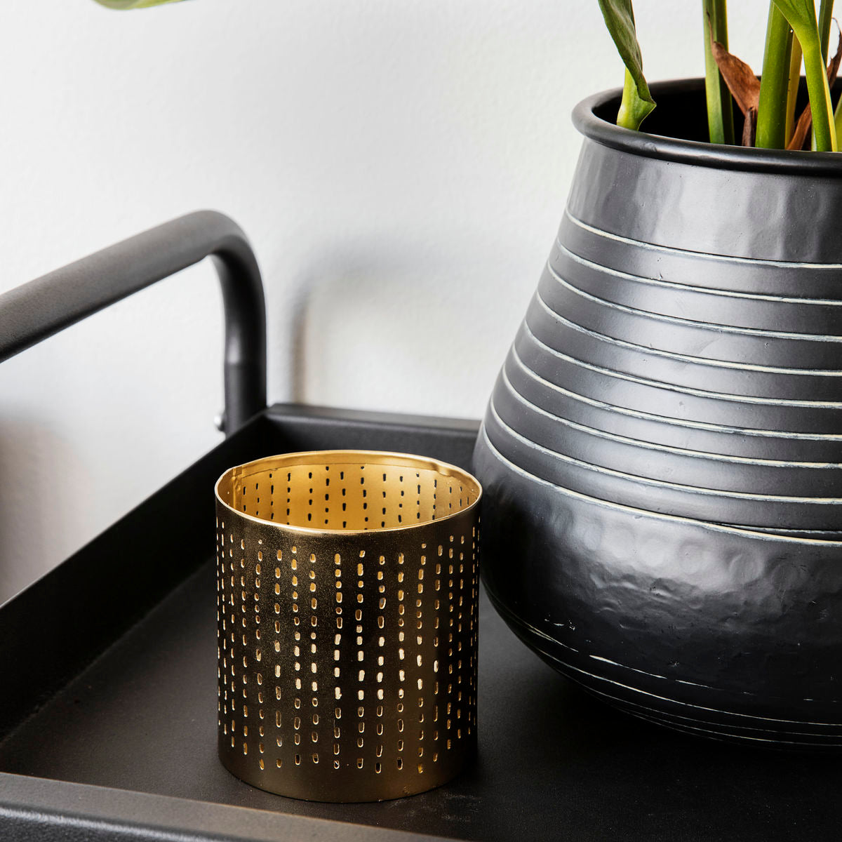 Med denne telysholderen fra House Doctor får du en unik glød gjennom de små hullene når lyset tennes. Telysholderen heter Wilma, og den bidrar til å skape en koselig atmosfære i ethvert rom i hjemmet. Wilma er laget av jern, som er belagt med en kul messingfinish. Den fine telysholderen er vakker i seg selv, men kan også kombineres med andre dekorative og stilige gjenstander for å skape en personlig oppvisning som passer din stil og ditt humør.