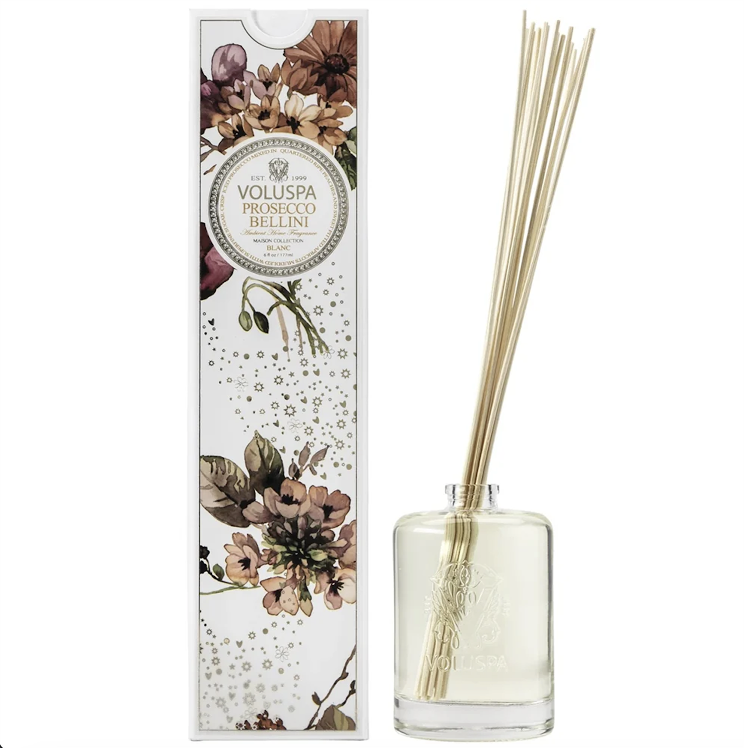 Delikate duftpinner med en duft av ferskenskall og søte ukjernede aprikoser rørt sammen med fint sukker og iskald Prosecco.