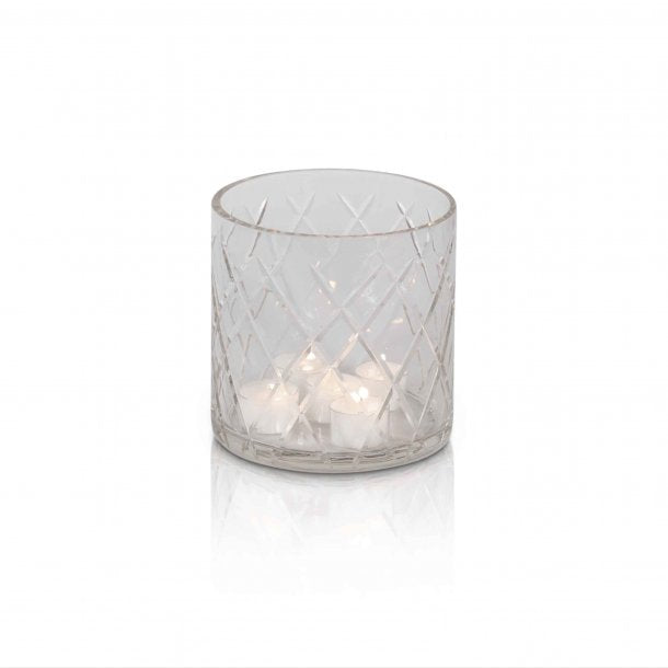 Eksklusiv lyslykt/vase i tykt og klart kvalitetsglass. Glasset er munnblåst og med håndslipt mønster.