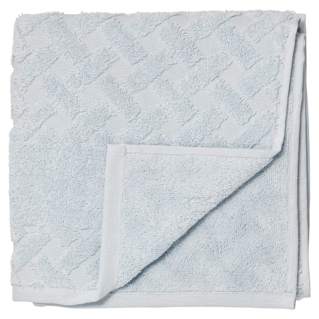 Vakkert jacquardvevd babyblått håndkle laget av 100% bomull fra LENE BJERRE. Legg til litt ekstra luksus til hverdagen med Laurie-håndkleet, som måler L100xB50 cm og som med sin myke tekstur sørger for hurtig tørking og høy absorbans. Håndkleet har et enkelt, skandinavisk design med to forskjellige overflateteksturer og det vil passe til et mylder av interiørstiler.