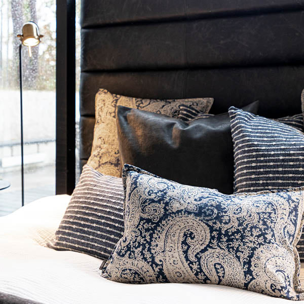 Putetrekk Memory blue fra Artwood er i et stilig mønster av hvite prikker og striper mot blå bakgrunn. Den strukturerte overflaten gir en levende følelse som setter karakter til sofaen, sengen eller lenestolen. Perfekt for å gi rommet en subtil fargetone med en grafisk vri.