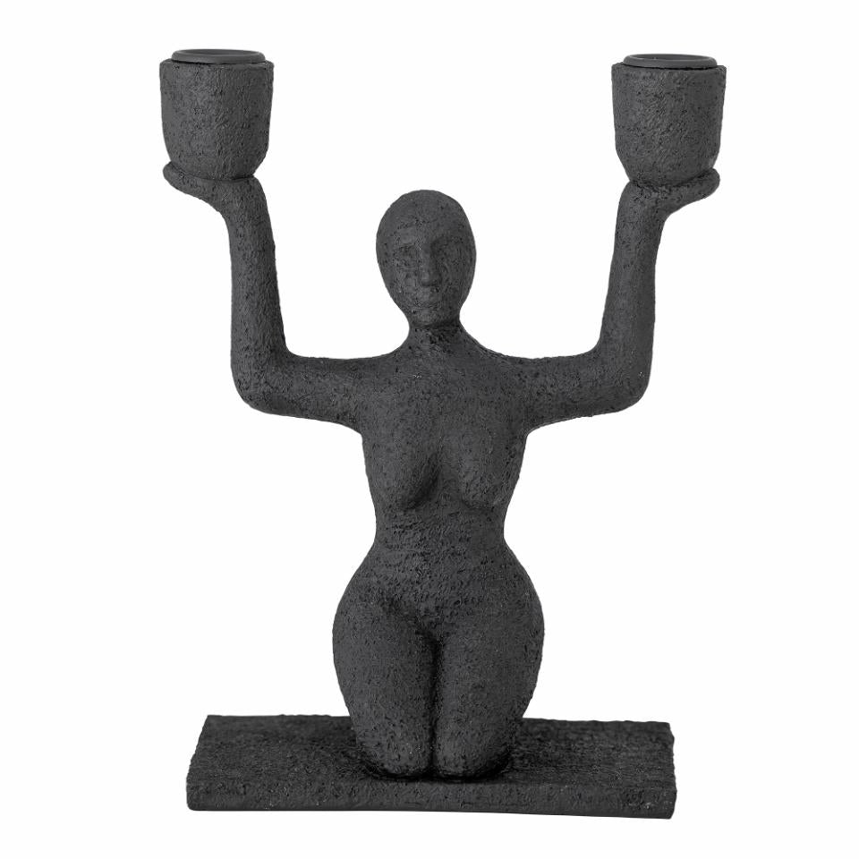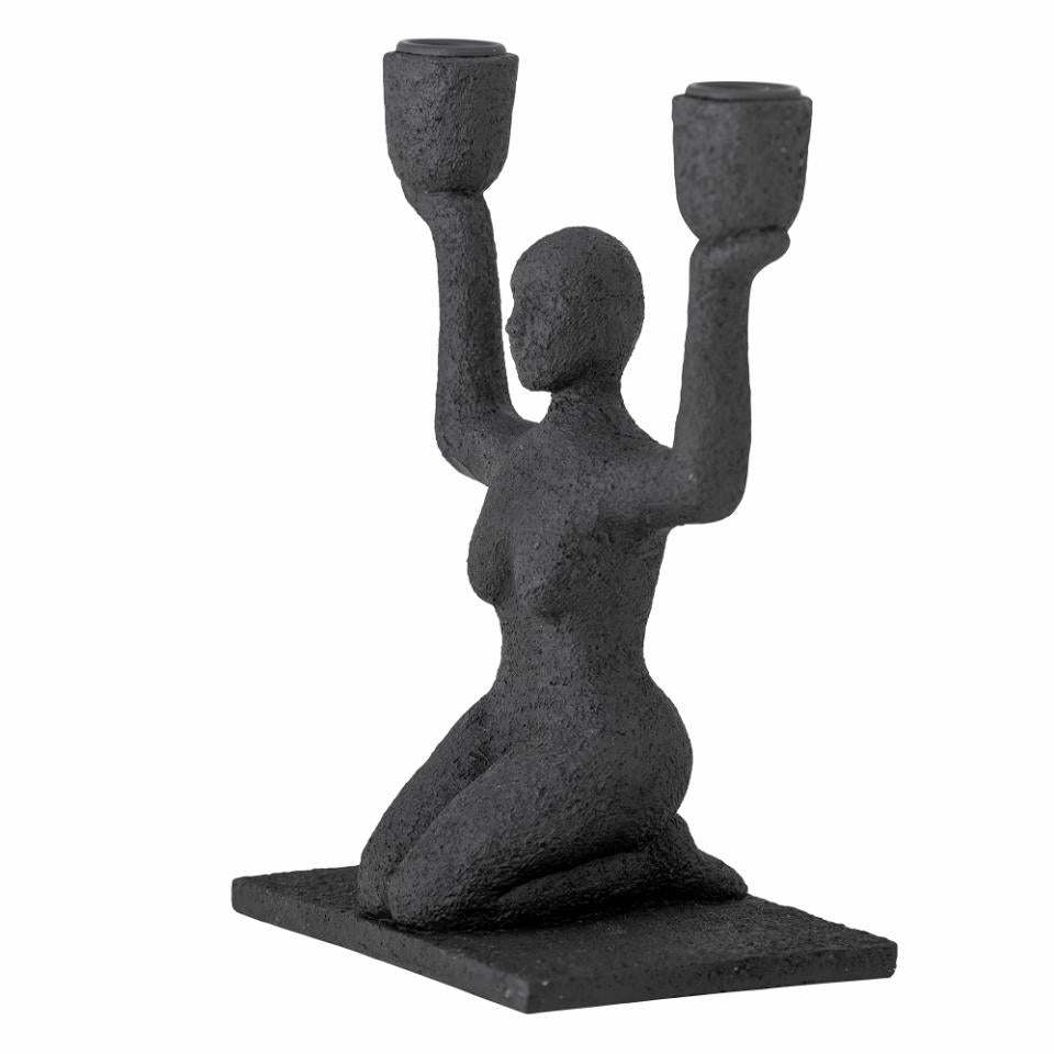 Lucie lysestake fra Bloomingville er en dekorativ lysestake laget i polyresin, formet som en sittende kvinne som holder to lysholdere. Den er like fin som skulptur som til lysestake. En nydelig detalj alene eller i kombinasjon med annet interiør.