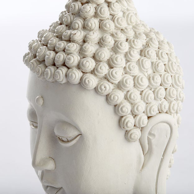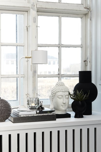 Lekker dekorasjon Serafina fra Lene Bjerre med Buddha hode i hvitt. Det er detaljene i et hus som gjør det til et hjem, og figuren er så detaljert at den nesten ser ekte ut. Bare ved å se på bildet kan du nesten få følelsen av å stryke hånden over den detaljerte overflaten av figuren.