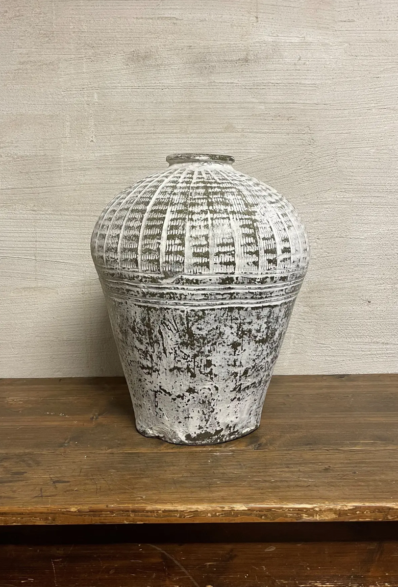 En nydelig antikk urne i keramikk fra Olsson & Jensen. Dette er et unikt produkt, noe som betyr at farge, form og størrelse kan variere. Hver potte har sitt helt unike uttrykk – ingen er helt like.