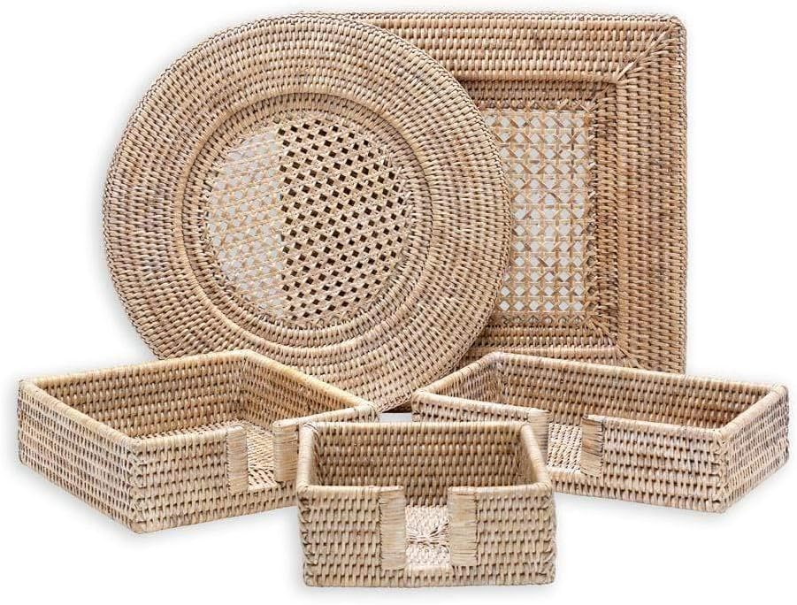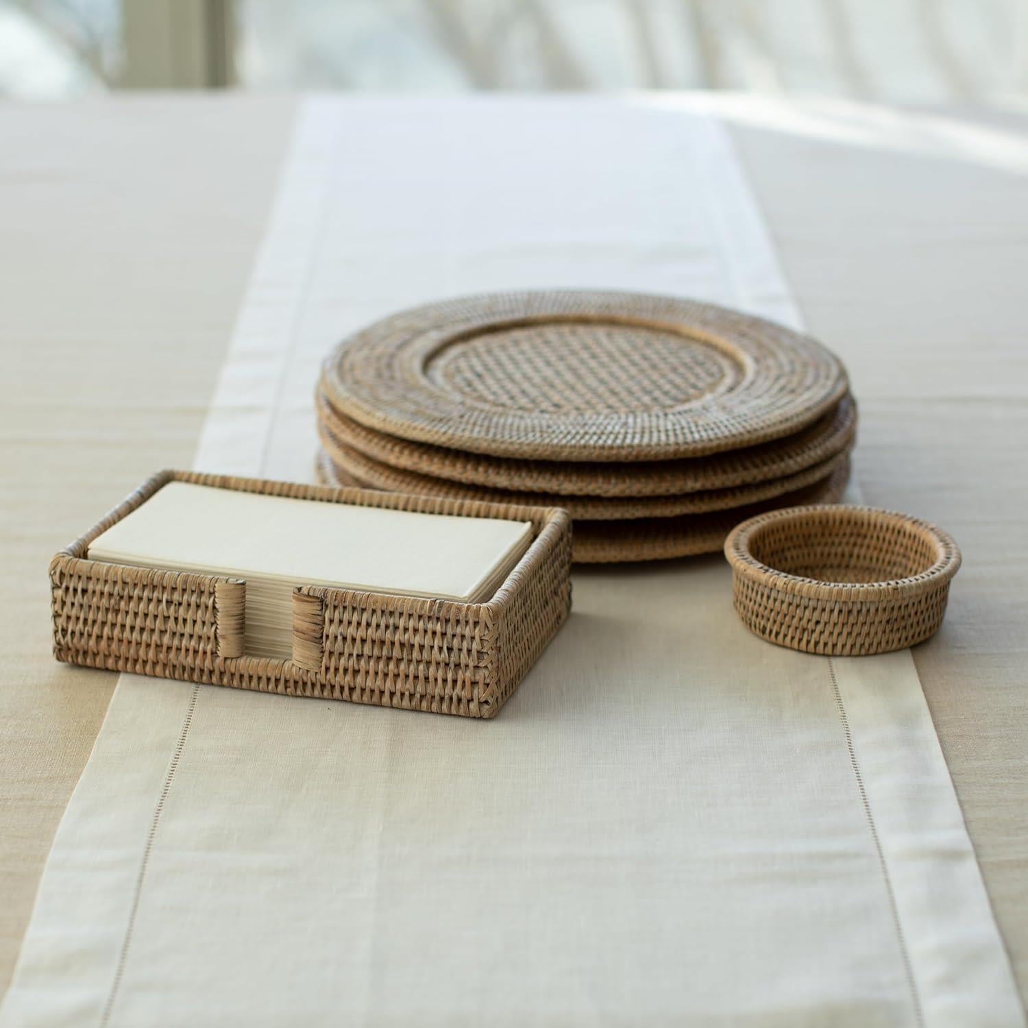 Elegant rund dekketallerken i kremfarget rotting fra Caspari. Den er håndlaget i solid og varig rotting som er vevd og lakkert i Myanmar.