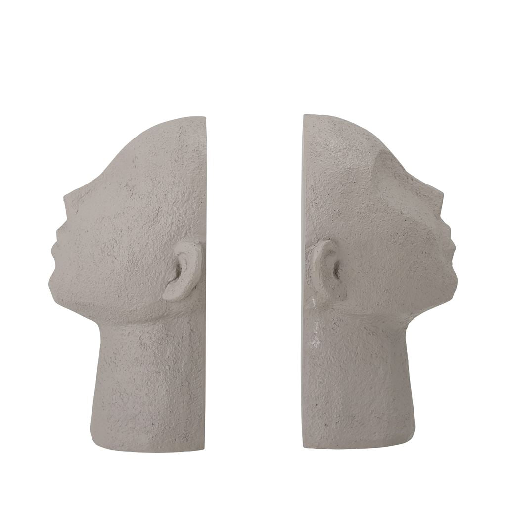 De vakre Baldur-bokstøttene fra Bloomingville består av et sett med to skulpturer, som er klare til å sikre at bøkene dine er perfekt plassert og ikke faller eller velter. Baldur er laget av grå polyresin, og hver bokstøtte simulerer et tribal ansikt.
