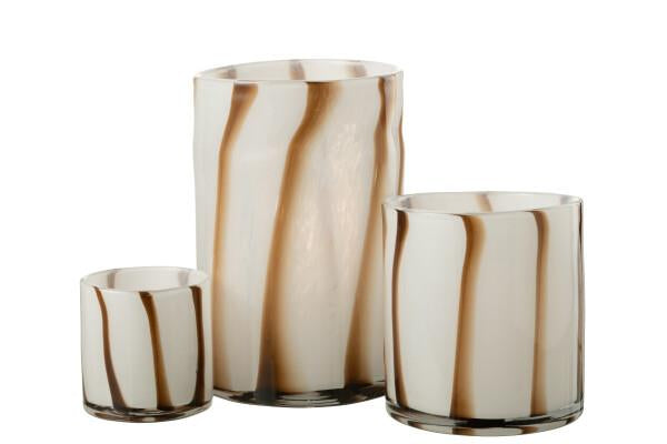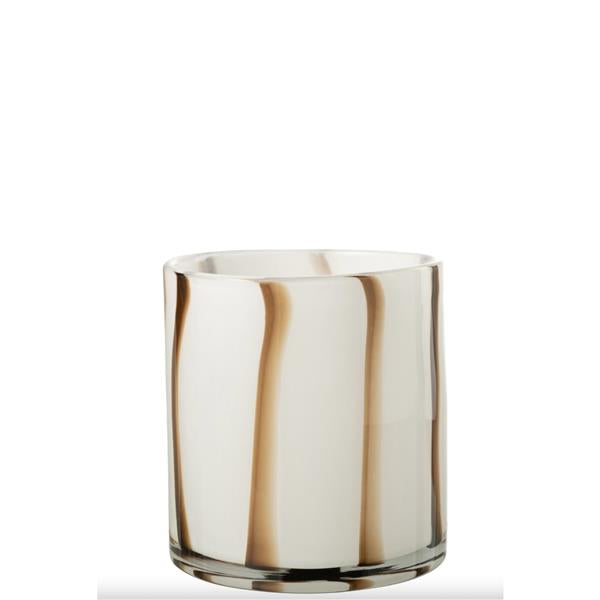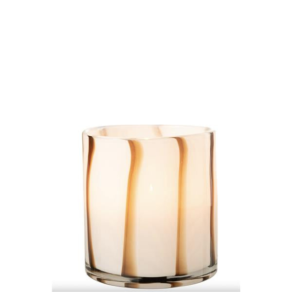 Elegant telysholder Safari fra J-line i lekkert glass med striper i hvit og brun. Et delikat tilskudd til ethvert hjem.
