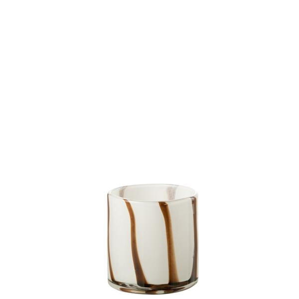 Elegant telysholder Safari fra J-line i lekkert hvit glass med brune striper. Et delikat tilskudd til ethvert hjem.
