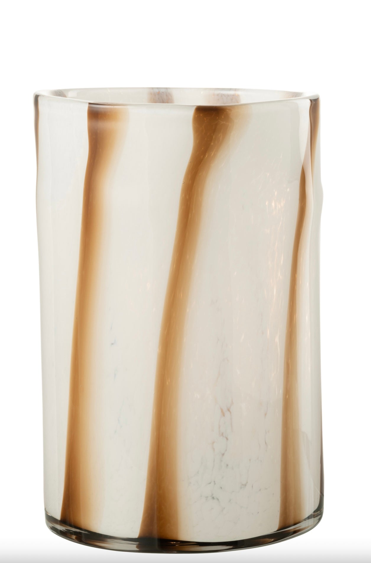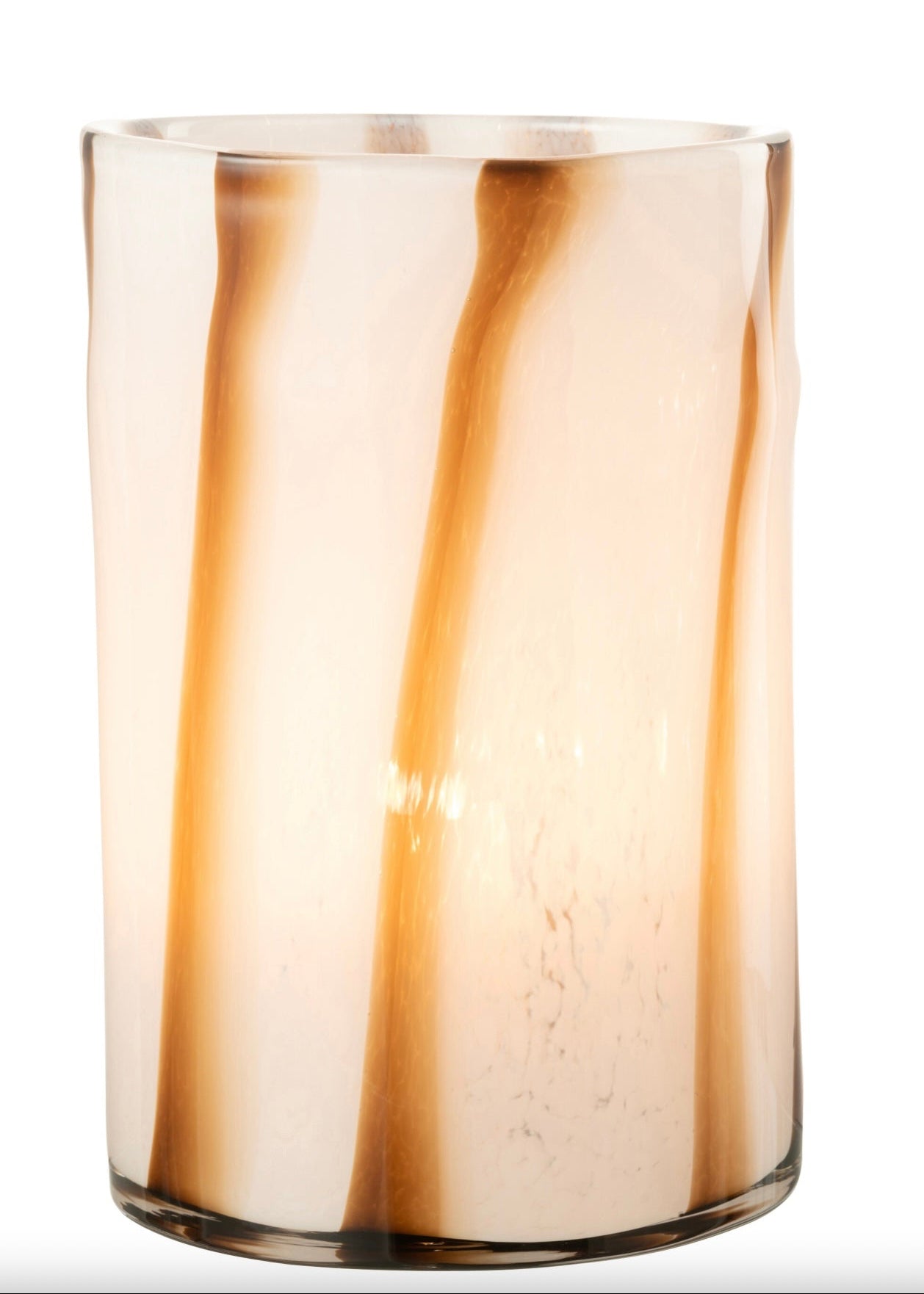 Elegant lyslykt Safari i glass med striper i hvit og brun fra belgiske J-line.