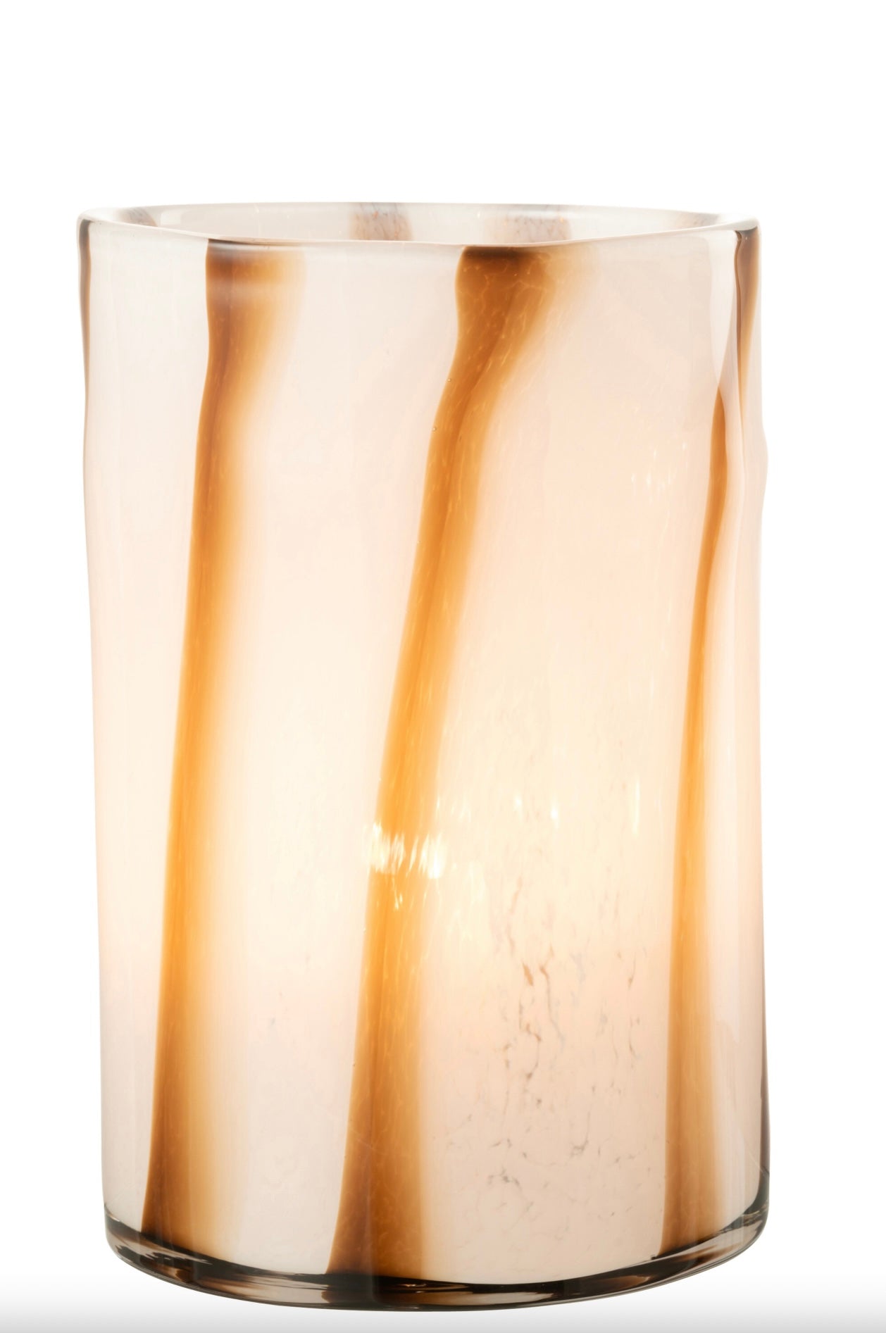 Elegant lyslykt Safari fra J-line i lekkert glass med striper i hvit og brun. Et delikat tilskudd til ethvert hjem. Den kan også brukes som vase.