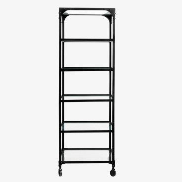 Skap et stilig og moderne hjem med denne åpne hylleenheten fra Nordal. Den svarte lakken gjør den perfekt for ethvert interiør, mens de 6 glasshyllene lar deg vise frem favorittgjenstandene dine på en elegant måte. Med hjulene kan du enkelt flytte hylleenheten rundt i rommet etter behov.