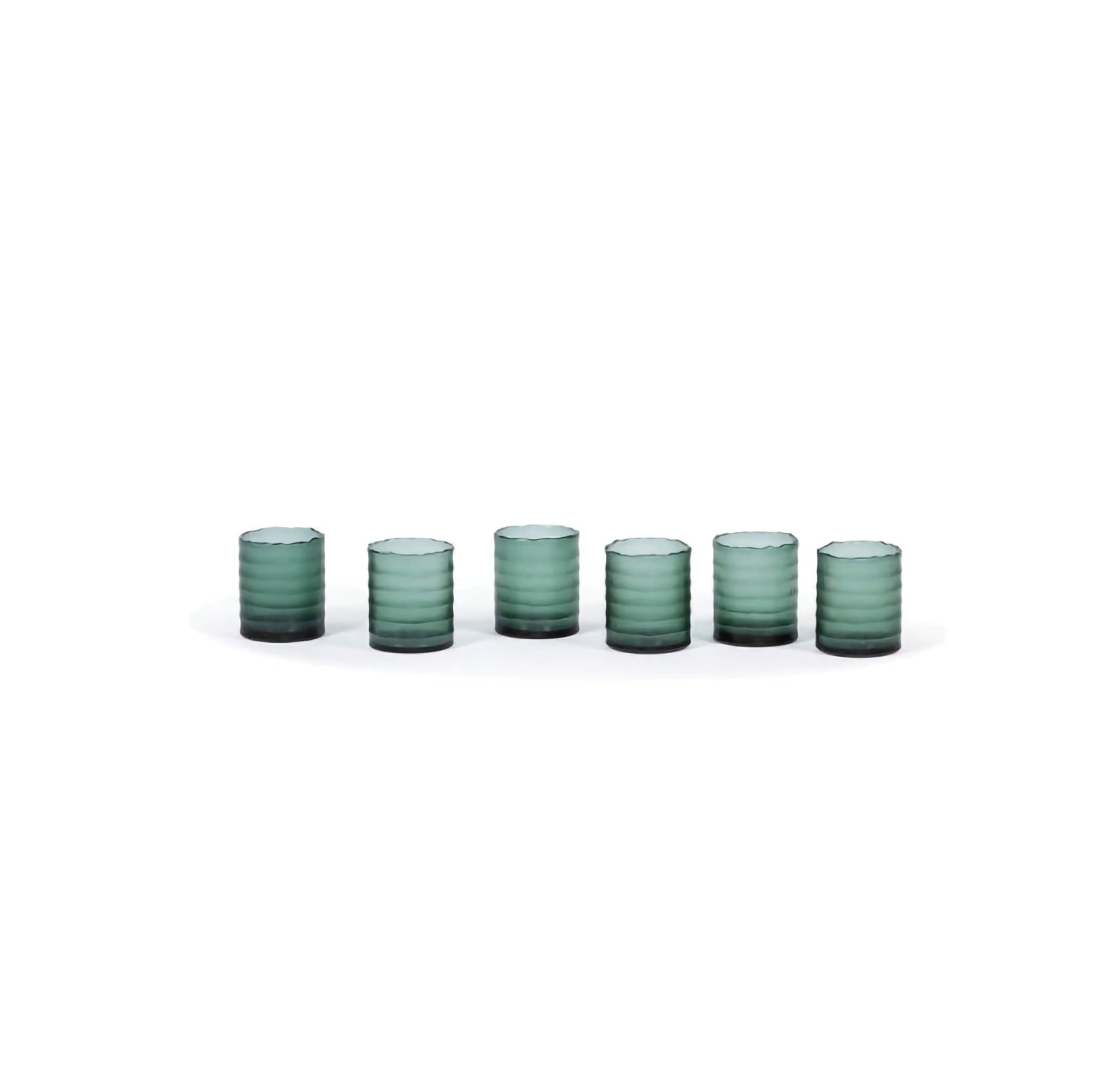 Vakker og flott telysholder fra Dekocandle i glass med organisk kant. Den er i blågrønn farge som skifter avhengig av lyset, se bilder fra butikk i forhold til produktbilder fra leverandøren.
