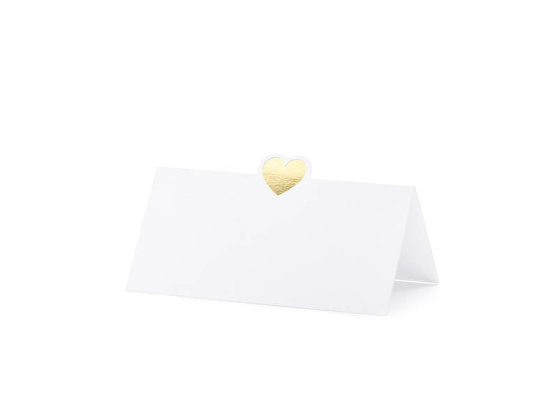 De vakre hvite bordkortene med gullhjerte er perfekte for tilføre en elegant touch til din fest. Hvert kort måler 10x5 cm og kommer i en pakke med 10 stk.