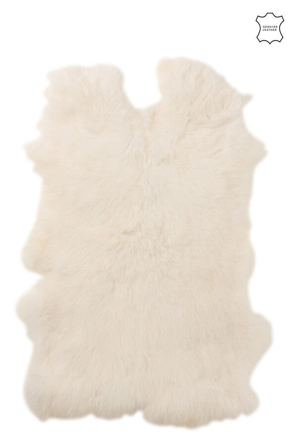 Naturlig hvit kanin skinn som er lettvint å ha med på tur eller til å ha i hytteveggen. Kanin skinnet er fra belgiske J-line.