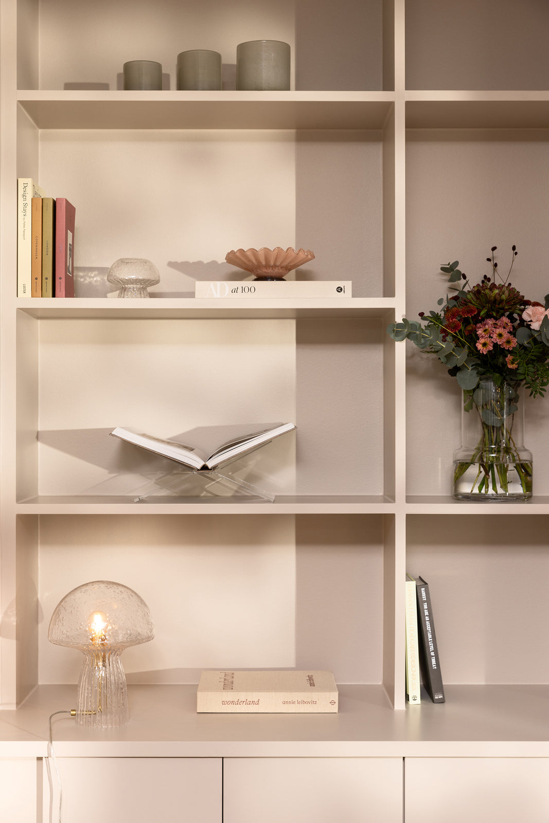 Lampen har mange flotte små luftbobler i glasset som gir en koselig stemning når lyset er på. Fungo Special Edition 22 er en mellomstor bordlampe som passer perfekt i vinduet, på en skjenk eller en hylle.