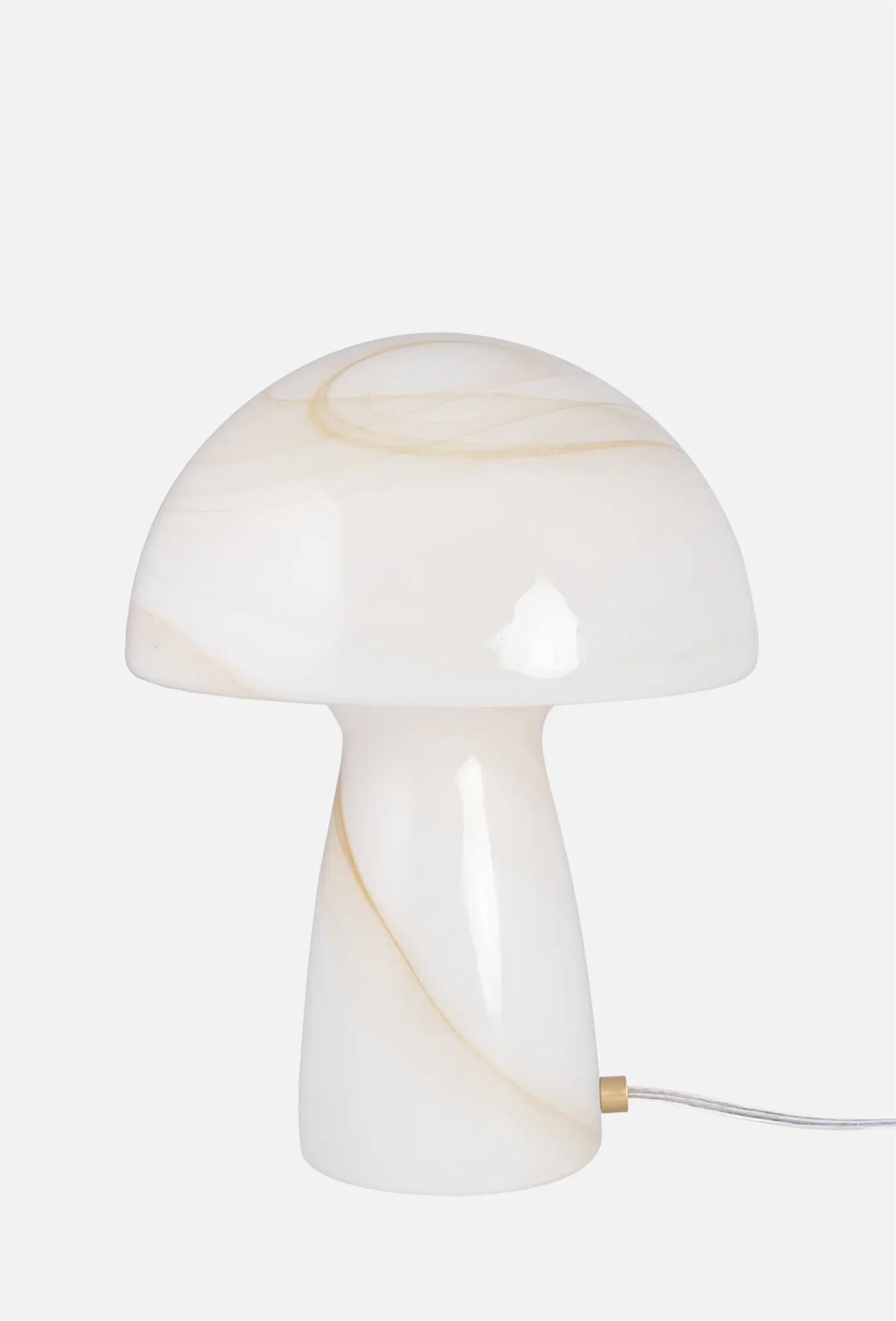 Inspirert av skogen kommer denne vakre sopplampen Fungo Swirl 22 fra Globen Lightning med sitt vakre hvite og lysebrune glass. Den gir et behagelig mykt lys og fungerer godt i en bokhylle eller på et sidebord. Lampen er i fargen Beige.