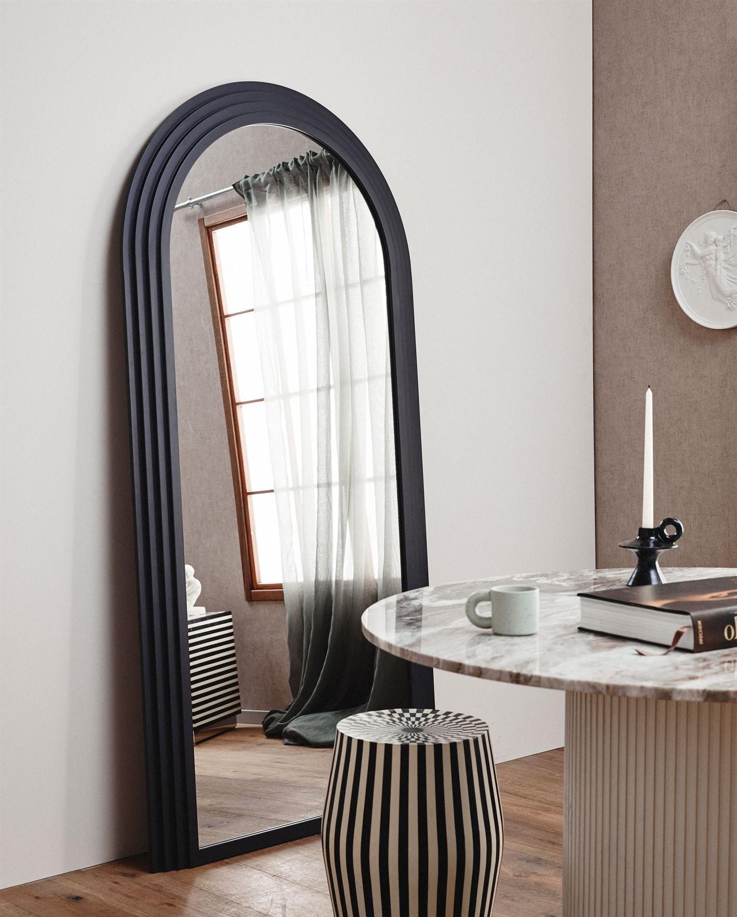 Det flotte FALCO speilet i Anthracite fra Nordal har et design med en avrundet ramme i 3D-effekt. Metallet er pulverlakkert i en klassisk svart farge som vil passe inn i mange hjem. Bruk speilet i entréen eller på soverommet. Speilet har en horisontal brakett som gjør opphenget enkelt. FALCO kan også stå inntil veggen. Vi kan bestille speilet i en annen farge og størrelse.