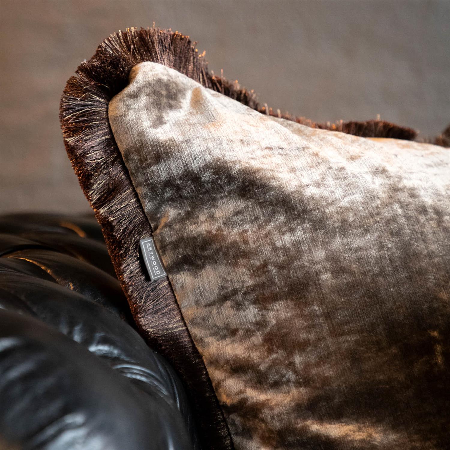 Putetrekk Garda Velvet Taupe fringe 50x50 cm