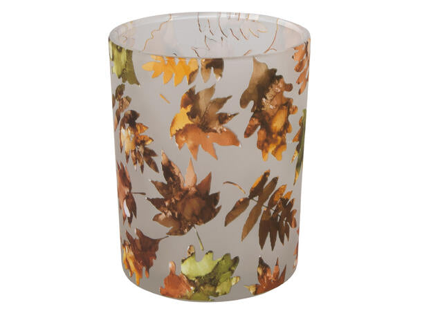Nydelig matt telysholder med løvblader på. Gir et stemningsfullt og vakkert lys. Perfekt til å gi lun stemning på høsten.
