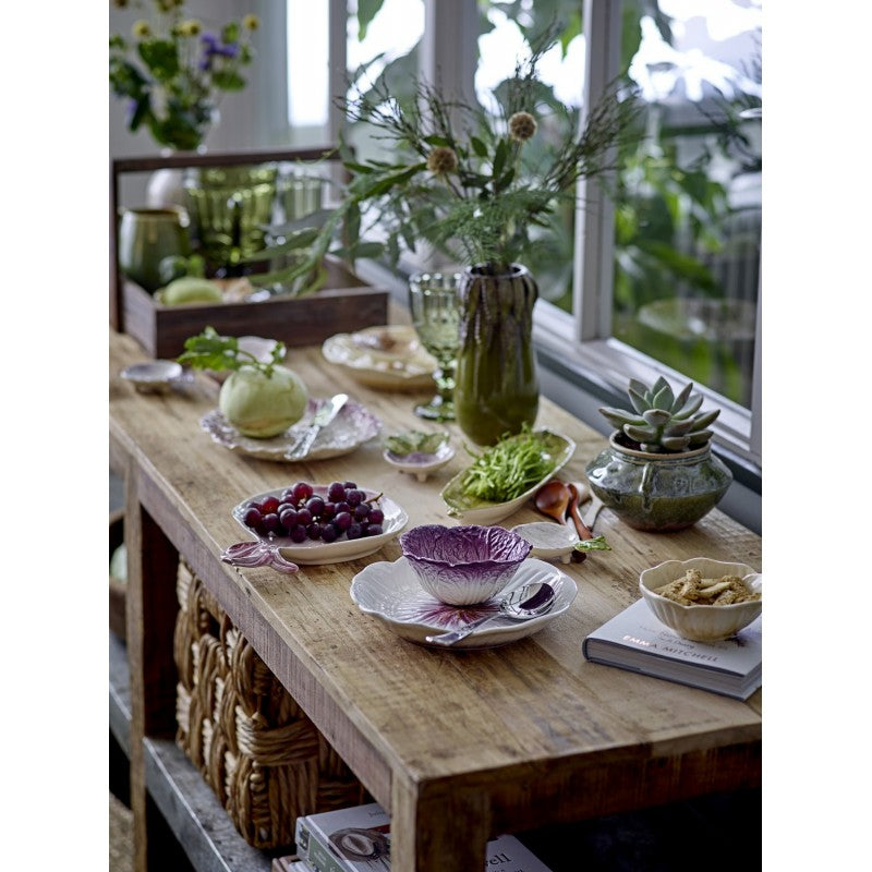 Den elegante Adorah skålen fra Bloomingville er en vakker bolle med form inspirert av en blomst i en grønnaktig nyanse. Den er dekorert med reaktiv glasur som gjør hver skål unik.