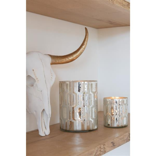 Lekker telysholder i sølv farget glass som gir et vakkert lys når den er tent.