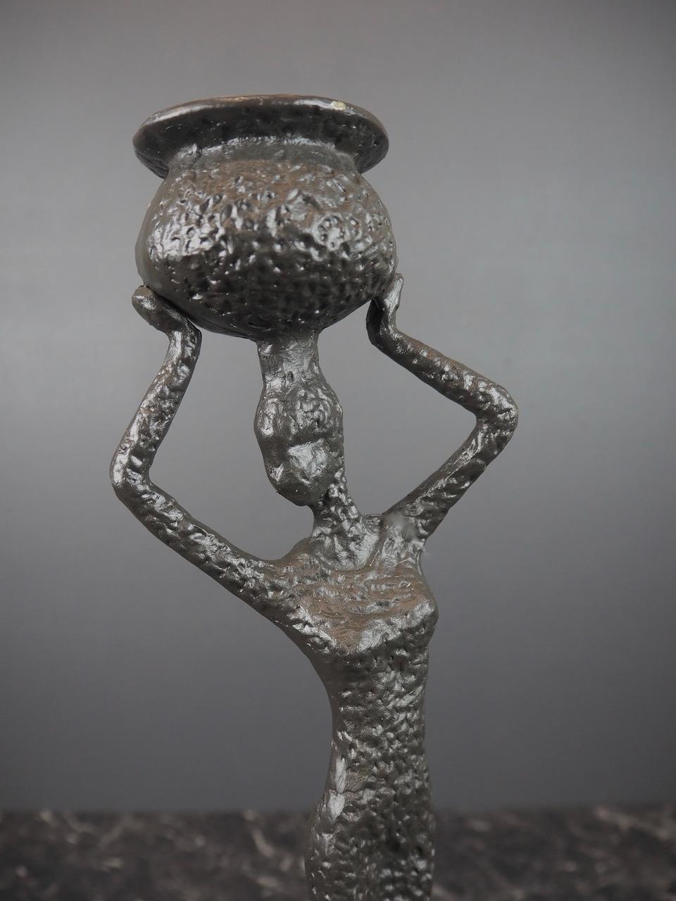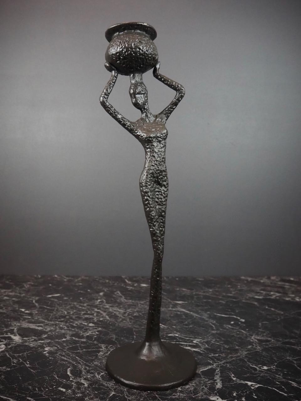 Lekker håndlaget dame som bærer en urne på hodet i jern.