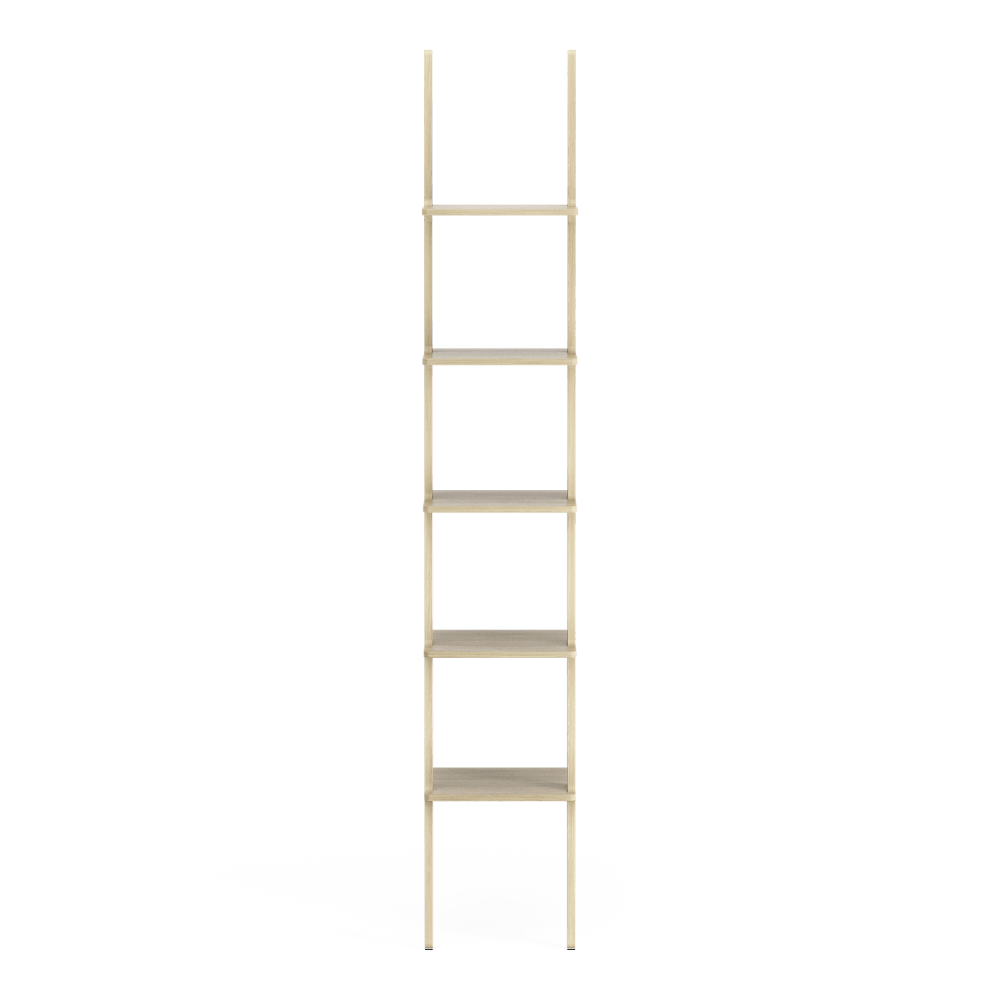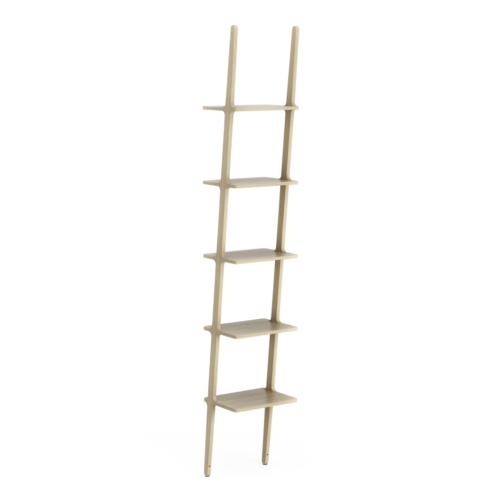 Hyllen er 38 cm bred og er utstyrt med justerbare føtter som enkelt kan justeres i høyden for ujevne overflater. Libri er laget av ask.