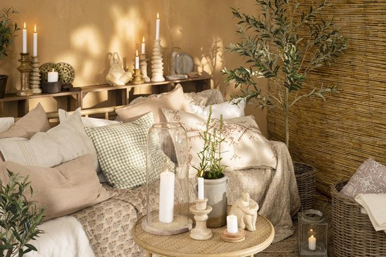 Herlig lysestake Milan fra Ib Laursen i steintøy med skrå ringer.
