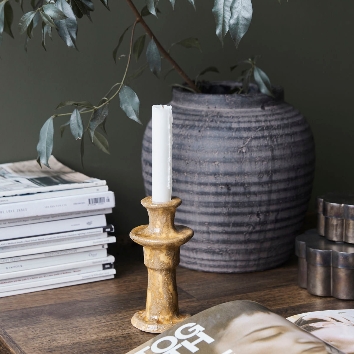 Et snev av ufullkommenhet gjør interiøret ditt perfekt. Denne lysestaken fra House Doctor tilfører den rustikke detaljen du trenger. Glasuren er ikke glatt og ser nesten ubehandlet ut, og den gir en fin kontrast til enkle lysestaker og minimalistisk dekorasjon. Plasser lysestaken i et personlig arrangement med dine favorittlysestaker for å skape en innbydende atmosfære.