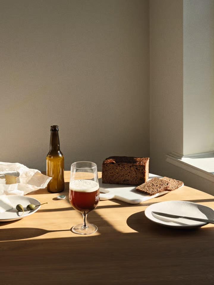 Flott håndblåst glass til øl i Smoke fra Broste Copenhagen.