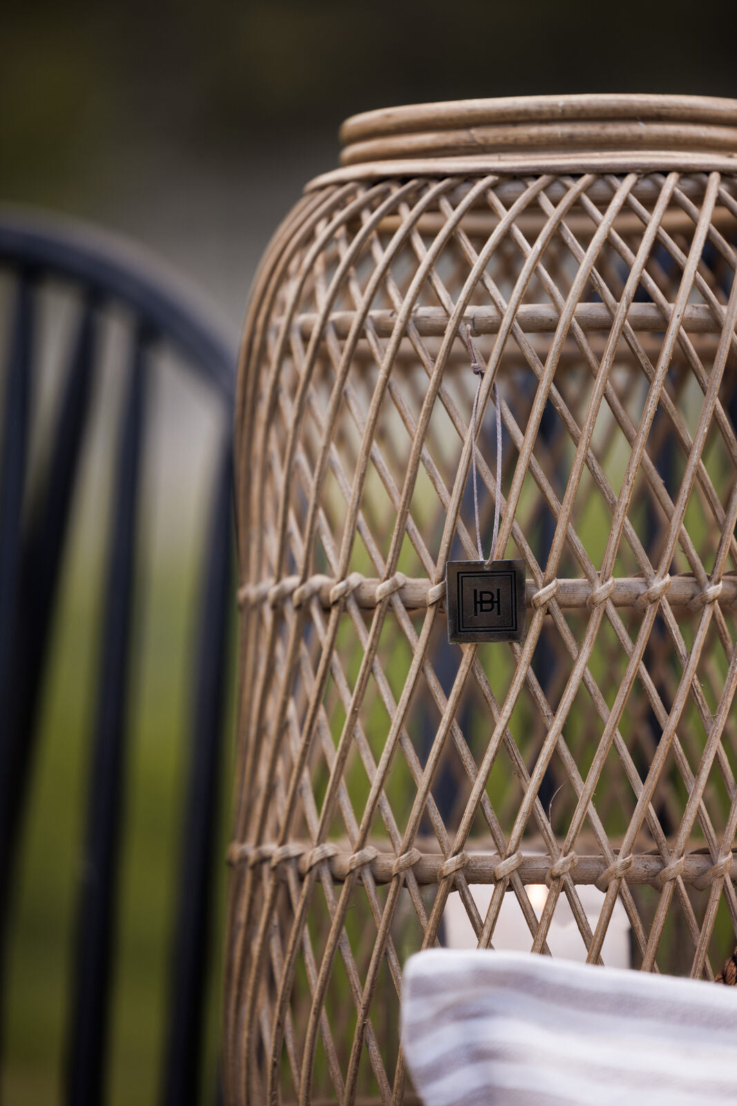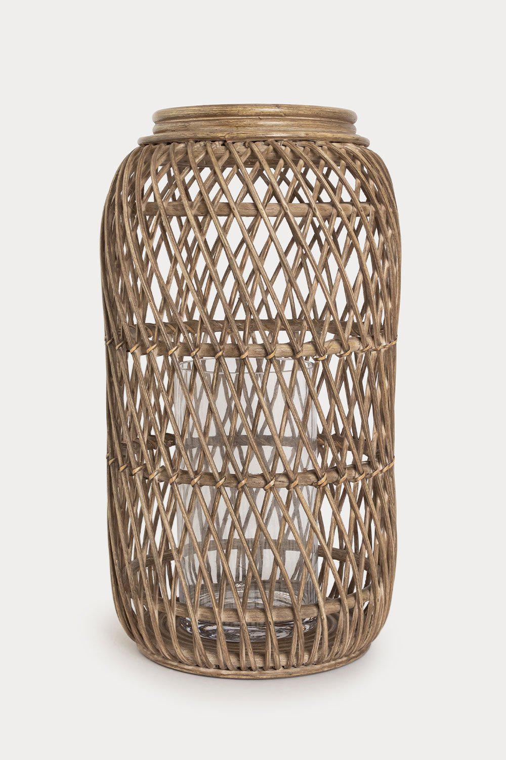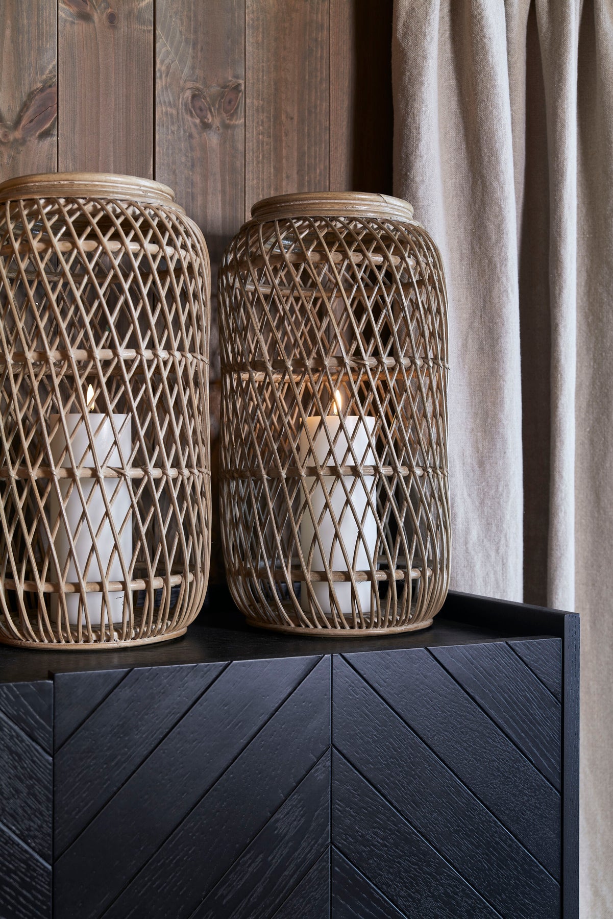 Lekker høy lyslykt Lombok fra Lama på 45 cm. Lyslykten er designet av Halvor Bakke for Lama og er i flott lys naturfarget flettet rotting med sylinder i glass til lys.
