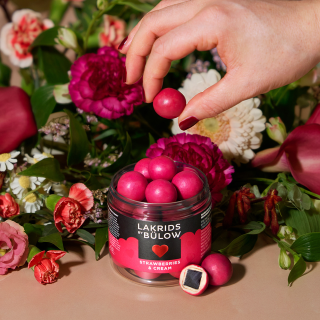 Oppdag lakrisen Strawberry & Cream fra Lakrids by Bülow med en søt synergi mellom smaksrike røde jordbær, hvit myk fløte og søt lakris. Hvit sjokolade binder det hele sammen og gir deg en utrolig smaksopplevelse av ekte dansk kjærlighet.